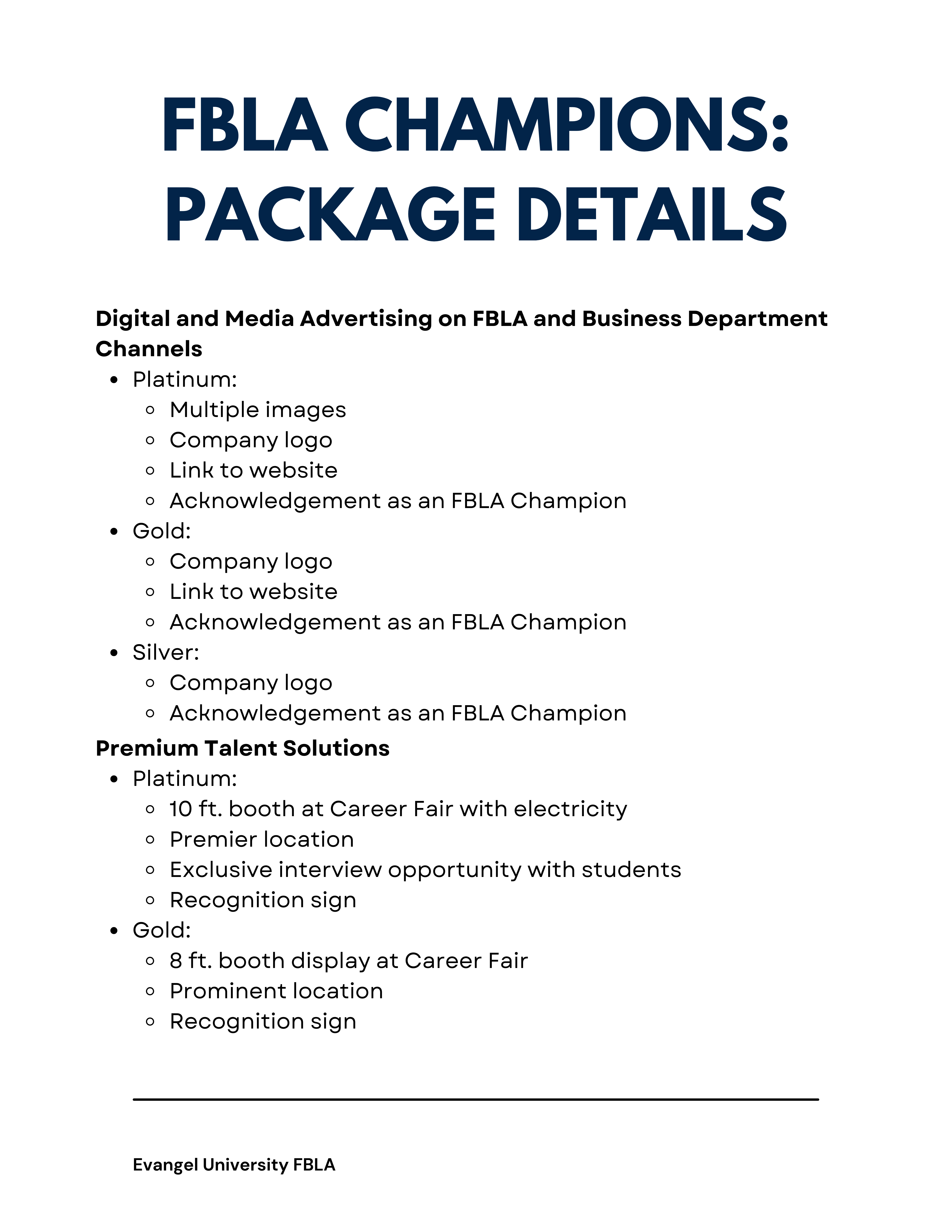 you can make a difference in the lives and futures of Evangel's FBLA business students!